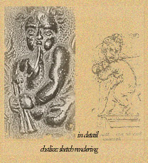 INTRODUCTION "Throughout Leonardo Da Vinci's artistic career, these ageless putties, little angels and symbolic troubadours were used to announce and play their eternal song and remind listeners of the heavenly flow of nature. Many authors such as Dan Brown would say that they herald the sweet sounds of the World as "sacred and feminine." Leonardo's message was universal and classical, and it is repeated on the chalice. For Da Vinci, the study of nature was key to understanding the universe, but it appears that it was always with a reverence to the spiritual. For him, nature represented a perfect view of the cosmic balancing act that life plays out every day." The Da Vinci Chalice sings to all, and those who slow down will hear its song, as though listening to earth music from a seashell for the first time. Da Vinci was a naturalist, a humanist, an inventor, a scholar, an artist and the ultimate Renaissance man. He strove to find understanding in the smallest parts of life and in the largest questions of humanity that surrounds everyone." To date, the Da Vinci Chalice Group has located three important new direct links between da Vinci's drawings and work on the chalice. The Group is trying to uncover additional drawings that will aid in the task. THE LEFT-HANDED MASTER'S WORK The applications and design was done by a left-handed artist, and da Vinci was left-handed.