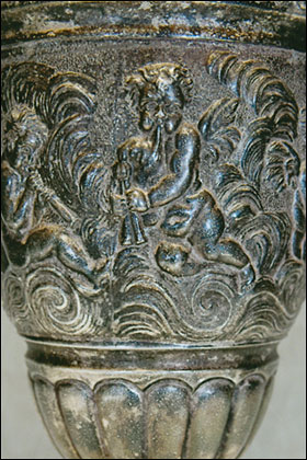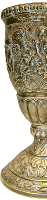 Verrocchio's Cherub with a Dolphin offers a very clear vision of his work portraying putti. When we compare the Putto with the shawm/bagpipe (on the chalice) to the Dolphin Cherub, we realize the distinct hair and facial characteristics, as well as the muscle and body proportions with striking (identical) similarities. Whether fashioned totally by Verrocchio's or daVinci's hand may direct discussion. That these features so strongly hint origin from the same workshop would not seem as easy an argument. That there are no known chalices with these characterists or composition only makes the discovery of the da Vinci Chalice that much more exciting. It truly is a one-of-a-kind work of the master that appears to have remained uncatalogued and unknown.